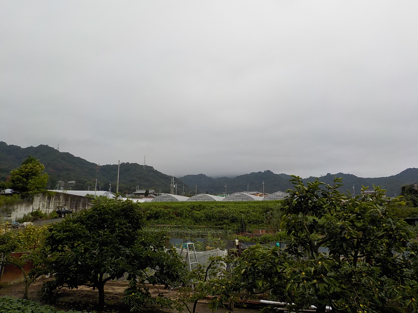 中央に並んでいるビニールハウスの向こうに見える山です。