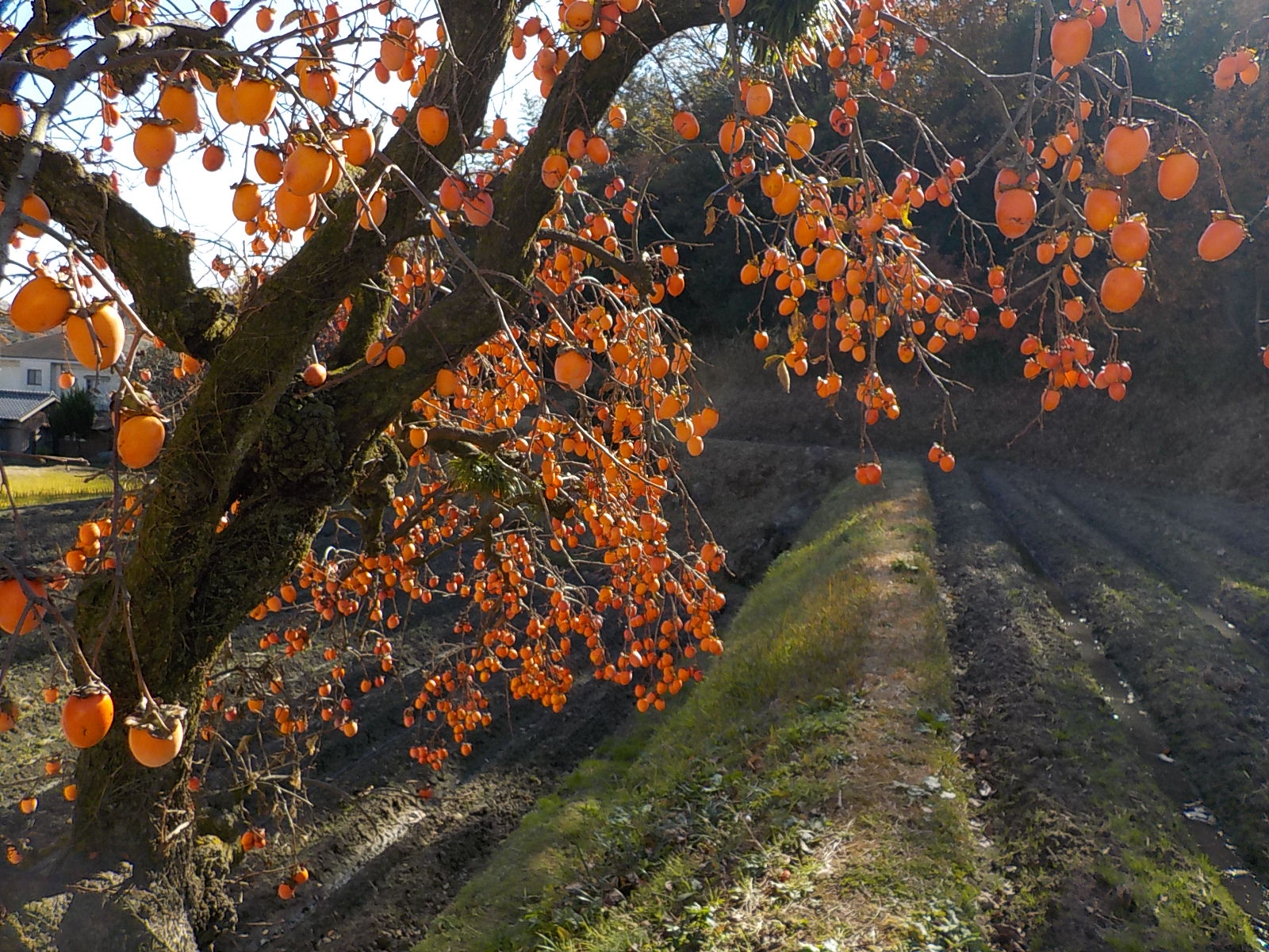 通りがかりの畑のそばに柿がたくさん。
