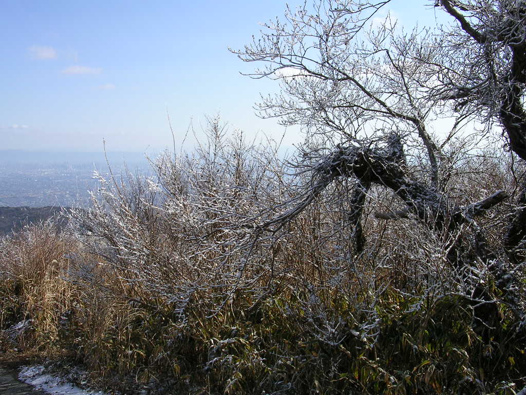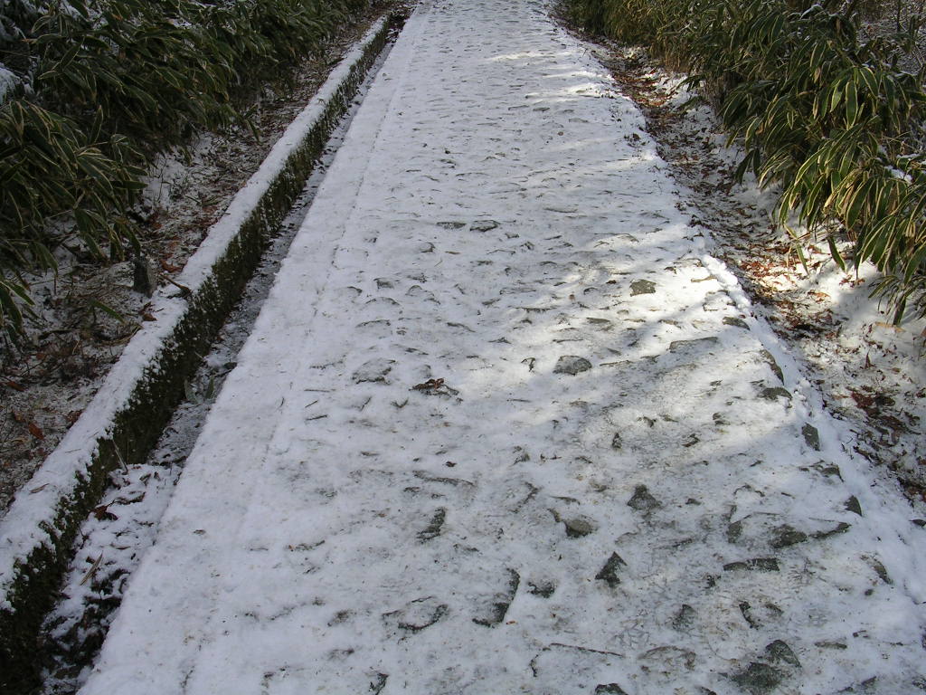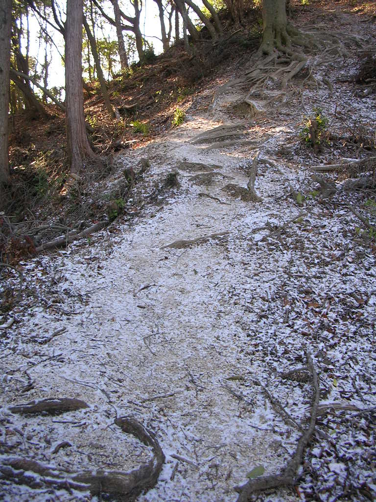 この画像のあたりまで登ってきたときにお寺の鐘の音などがしはじめて、読経する声がずっと聞こえてきました。正月早々なんだか微妙な気分で登りました^^;。
