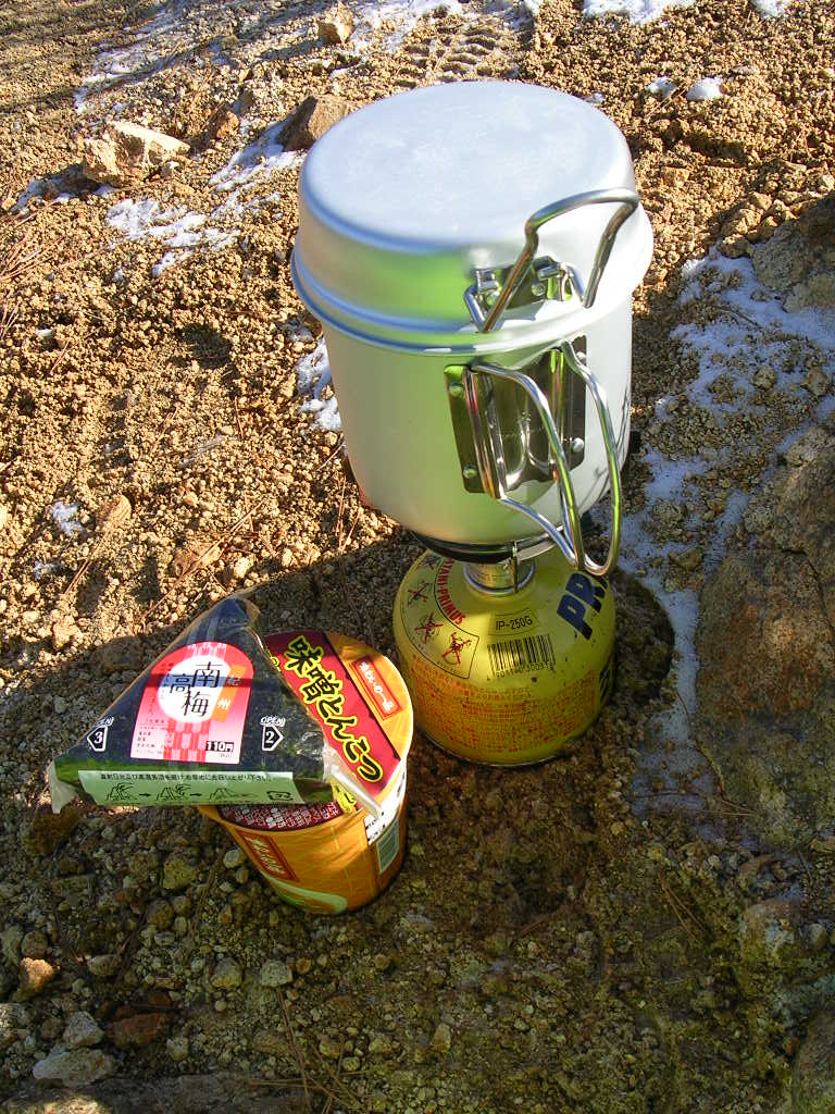 お湯を沸かしてカップ麺を食べたけど、寒さと風でなかなかお湯が沸かなくて待っている時間が大変でした。でも陽射しがあたっていたのでひなたぼっこ・・・までは行かなかったけど体はそれほど寒くかんじなかったんだけどなあ。でも手や指が相当冷たくなっていて、お湯を沸かす火に手をかざしながらのひなたぼっこでした。