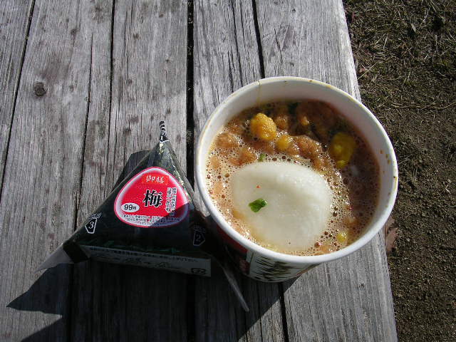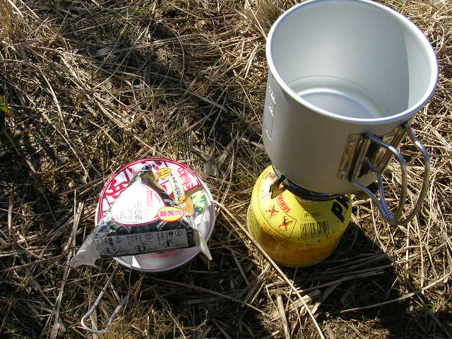 お湯を沸かしてカップ麺というパターンでしたが、景色の良い所と思って、小高い所に行ってお昼にしたのだけど、お湯がわくまでに体が冷える。