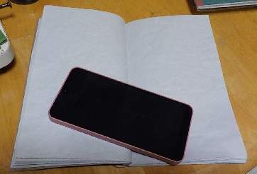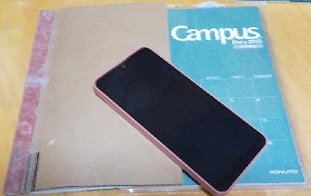 なので実質0円でA5サイズよりも少し細めの雑記帳が完成。上に載せているのは自分のスマホです。