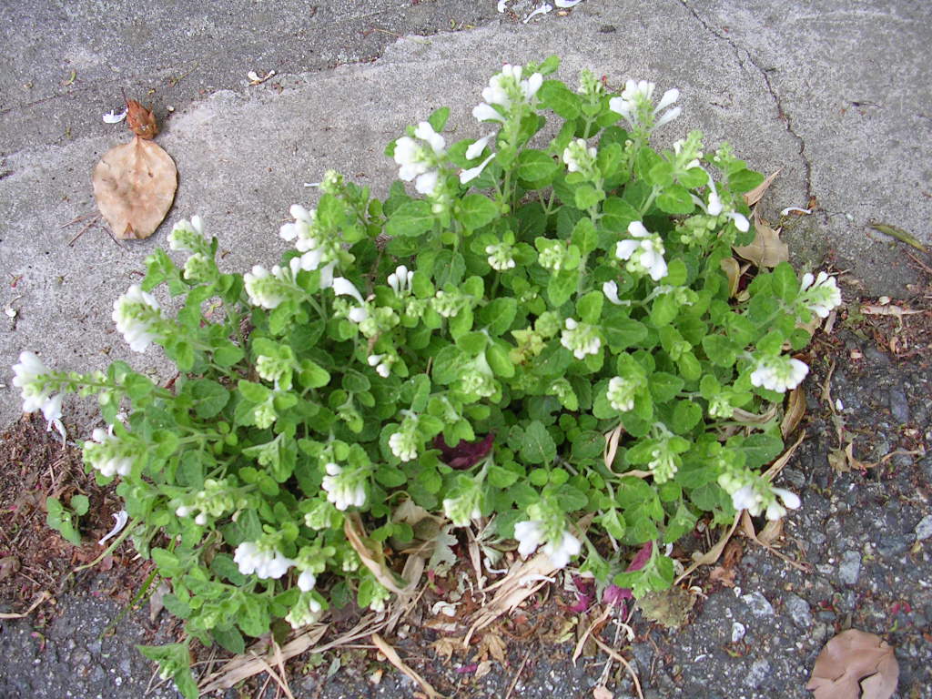 昨日、有馬の中心地へ出る手前、山間の民家の石垣に白いタツナミソウが咲いていました。
