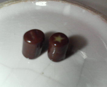 このチョコの円の部分はなぜか直線の筋が入っているのです。これは多分製造工程でこうなるのだろうと思うのですが、ごくまれに星形の印が入っているのがあることに気が付きました。