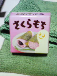 先ほどコンビニへ行ったら、チロルチョコのさくらもちと言うのを見つけたのでつい買ってしまいました(笑)。