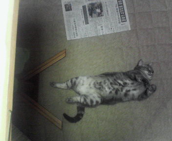 練習を始めたころには横の布団の上でぐ~すかと寝ていたのですが、ふと目を覚まして譜面台の前にやってきておなかをだして寝てしまいました。