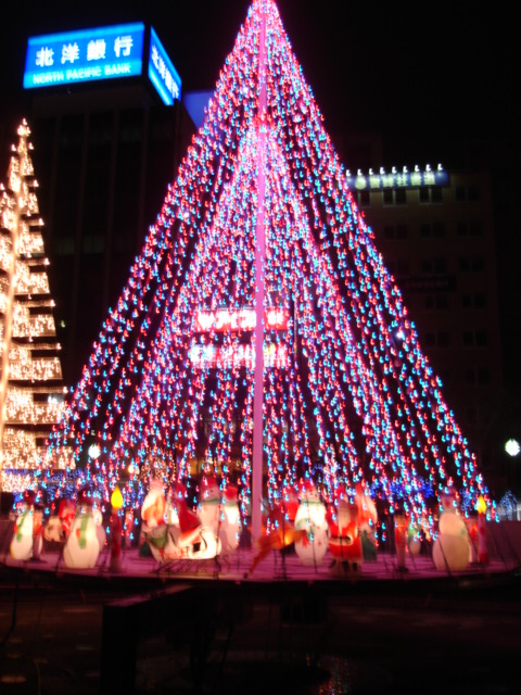 下の画像は大通り公園のイルミネーションのひとつ。他にもたくさん撮ったのですがうまく写っていなくて残念でした(TT)。