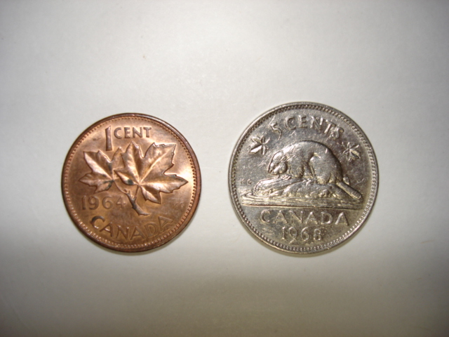1セントは楓の葉、5セントはビーバー、10セントは帆船、25セントはムース(カナダオオヘラジカ)なのだが、1967年は1=鳥、5=ウサギ、10=ニシン、25=山猫(リンクス)となっている。