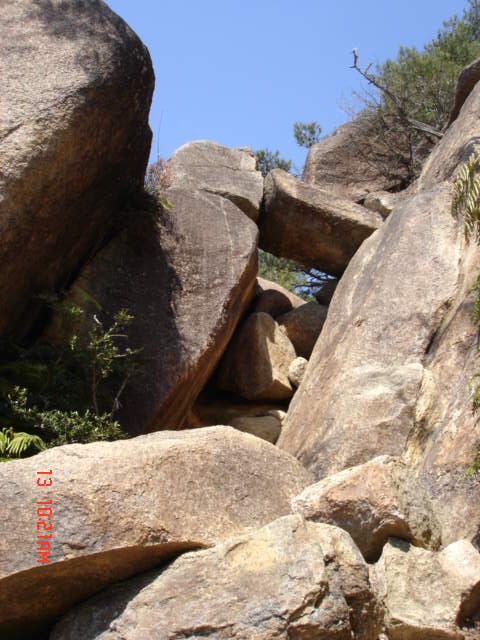 今日は流石に人出が少なくて、いつもならロッククライミングしてる人たちがいるのに、誰も居なかったので、真下から見上げてみました。