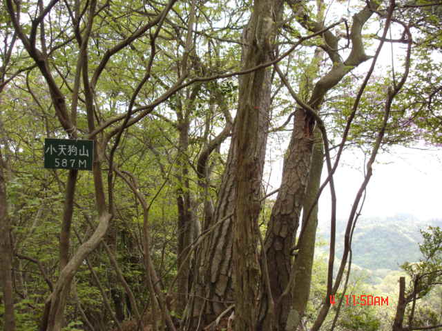 ネットで仕入れた情報によると、小天狗山の山頂には天狗のお面がぶら下がっている(笑)というのでそれをぜひ見たい、という単純な思いで登ったのでした。