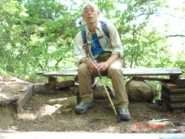 取り付きの近くにあるベンチにデジカメを置いて、タイマーで自分を撮ってみた。