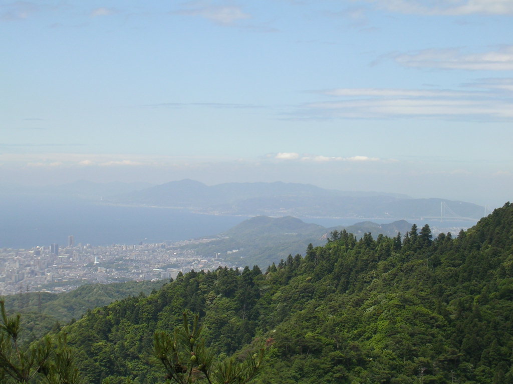 画面の右端にうっすらと白い橋が見えてると思いますが、これは明石海峡大橋で明石市と淡路島を結ぶ橋なのです。そして海の上に見えているのは淡路島です。^^