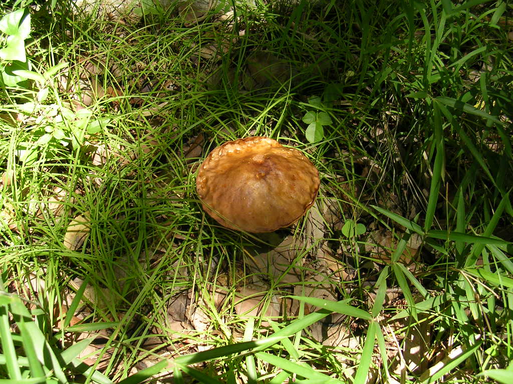 このキノコでもかさの大きさが握りこぶしよりも二回りくらい大きいもので、こんなのがあちこちに生えていたのでした。