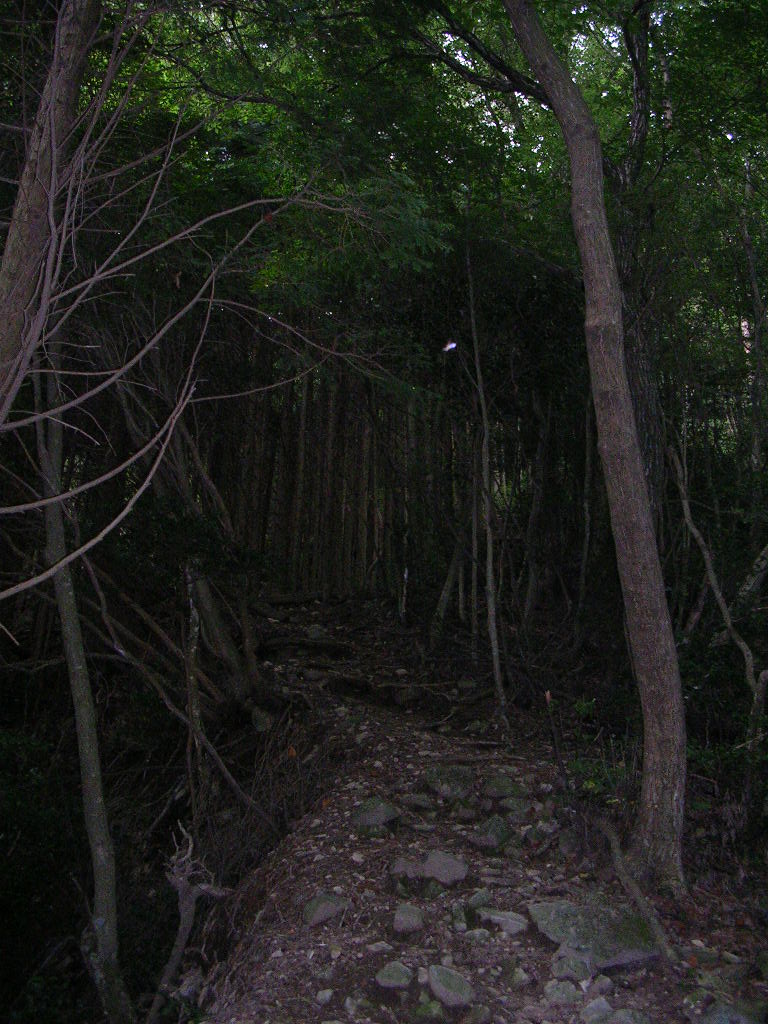 今日歩いたコースは、もともと鬱蒼とした杉林の木立を抜けていいくルートなので、晴れていても直接日が指すこともないような所。降りそうな空模様だと一層暗くて、気分的に疲れたかなあ。