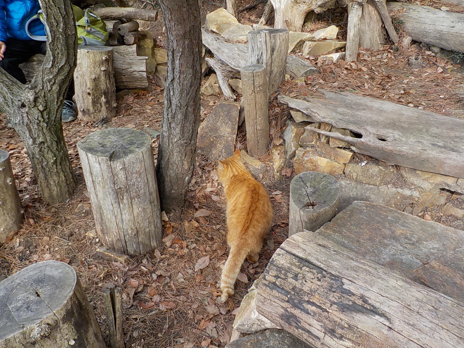 山頂には猫が住み着いていて、ハイキングで来た人に食べ物をねだっている。