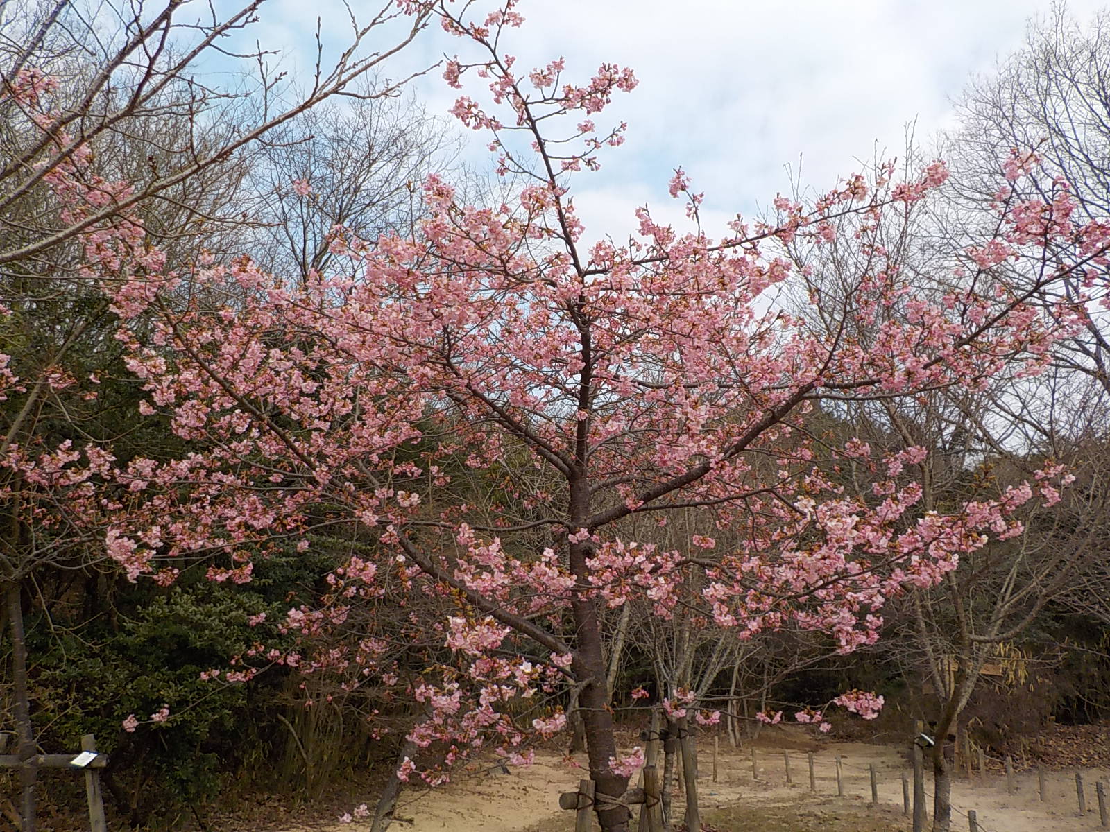 植物園の近くで、河津桜が満開でした。いつぞや見た河津桜の大木を思い出します。
