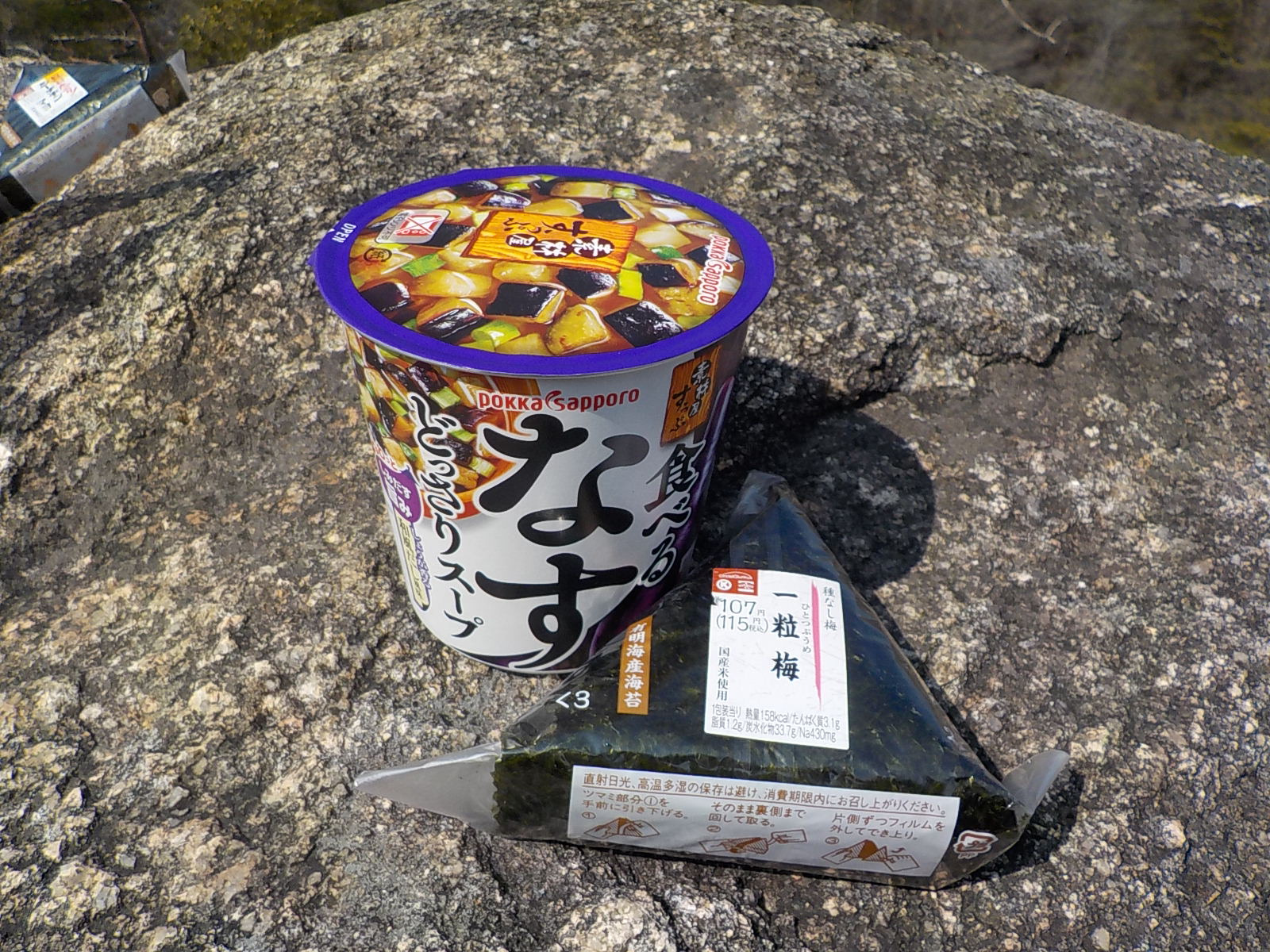 その後も歩き続けて、よく行く場所でおにぎりとスープで軽く食事。気温は既に20度ほどになっていたようです。風があったので爽やかでした。
