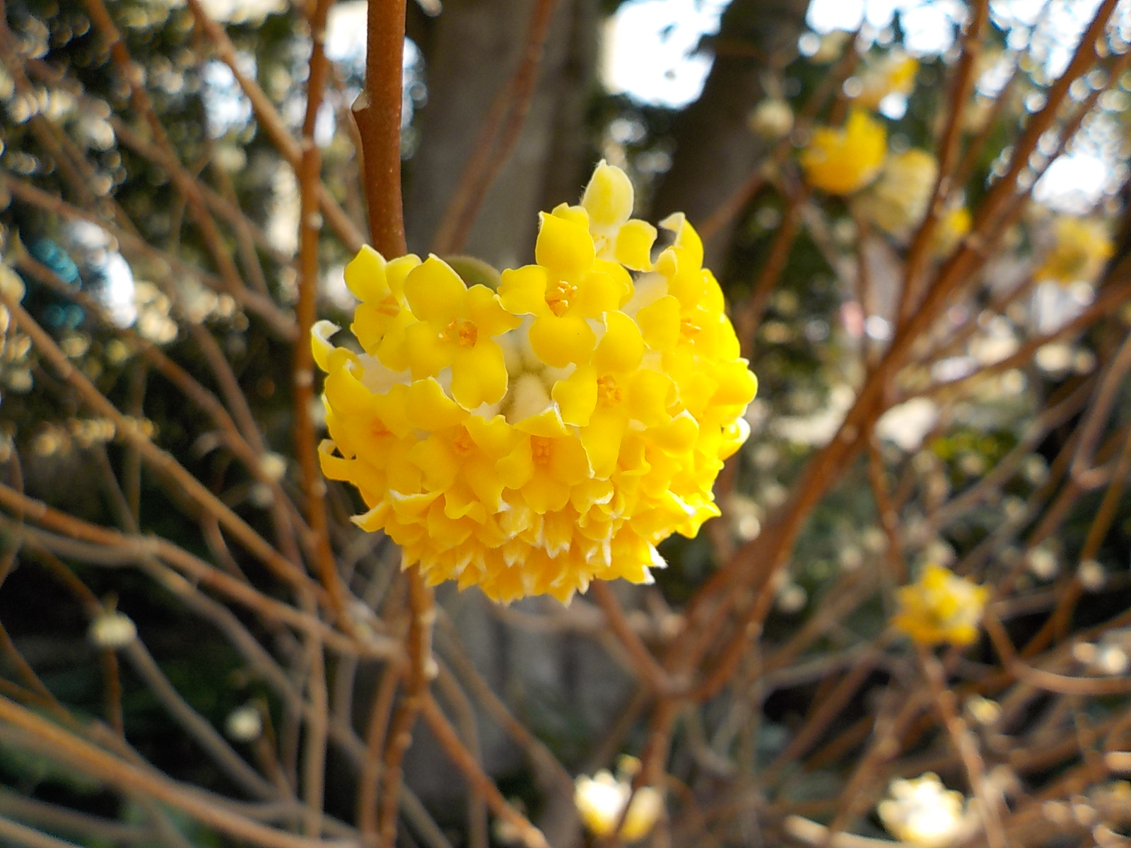 こちらは植物園に植えられているミツマタ(和紙の原料として使われます)の花です。