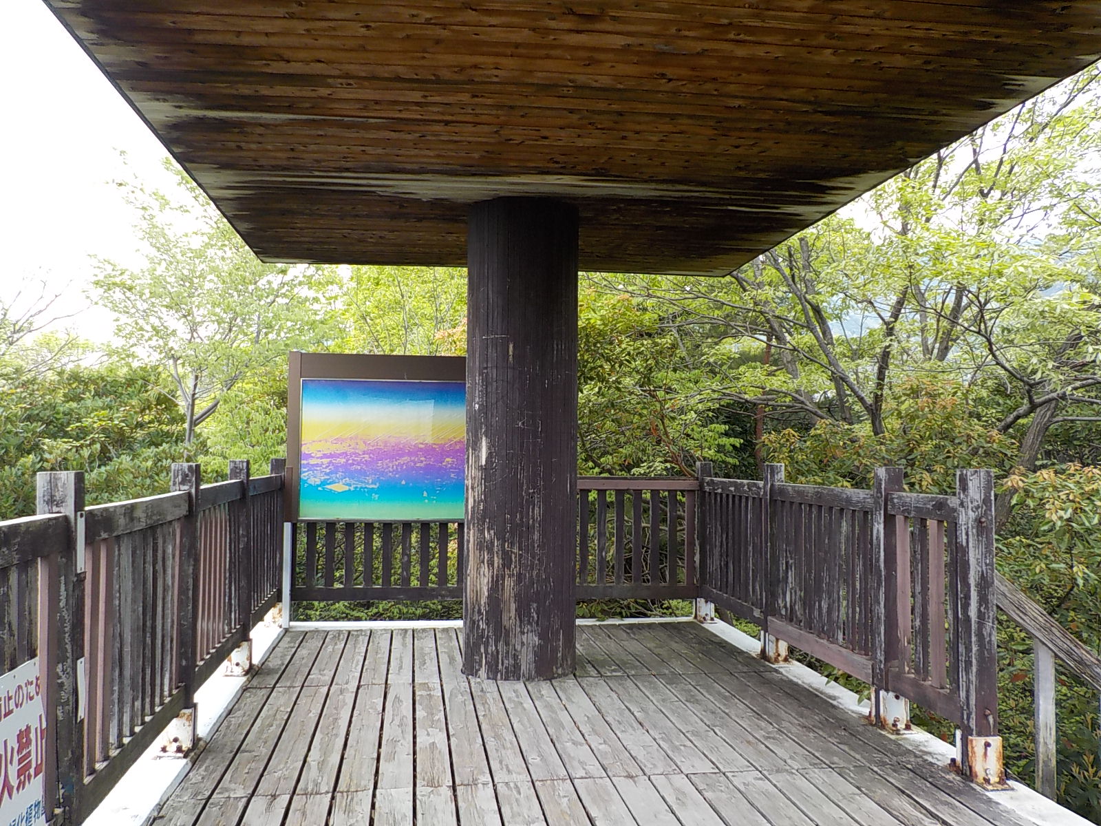 こんな感じの古びた展望台。出来た頃は見晴らしが良かったのでしょうけど今は周囲の樹木が育ってほとんど展望なし。ベンチも何故か一つだけあります。人も来ないしのんびりしました(笑)。