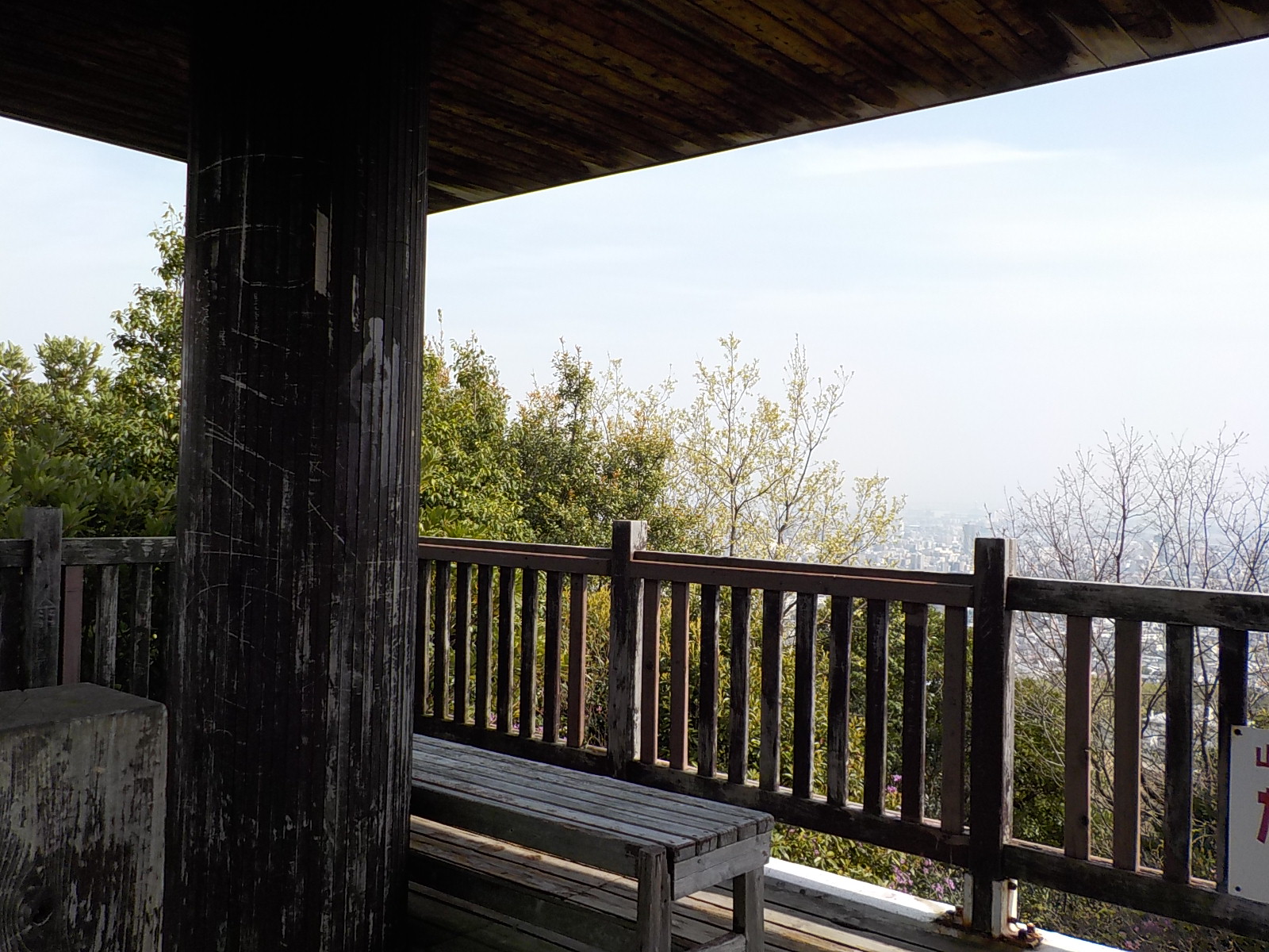 ちょっとした高台に展望場所があるのだけど、メインの遊歩道から少し離れているのでほとんど人が来なくてのんびり過ごすのには丁度の場所。ちょっとした高台になっていて、造られた当初は海が見わたせる(今でも育った樹木の間から見える)ので洋望台と名付けられている。場所的にも高台だし、更に高床式的な展望場所なので一層風通しが良い。