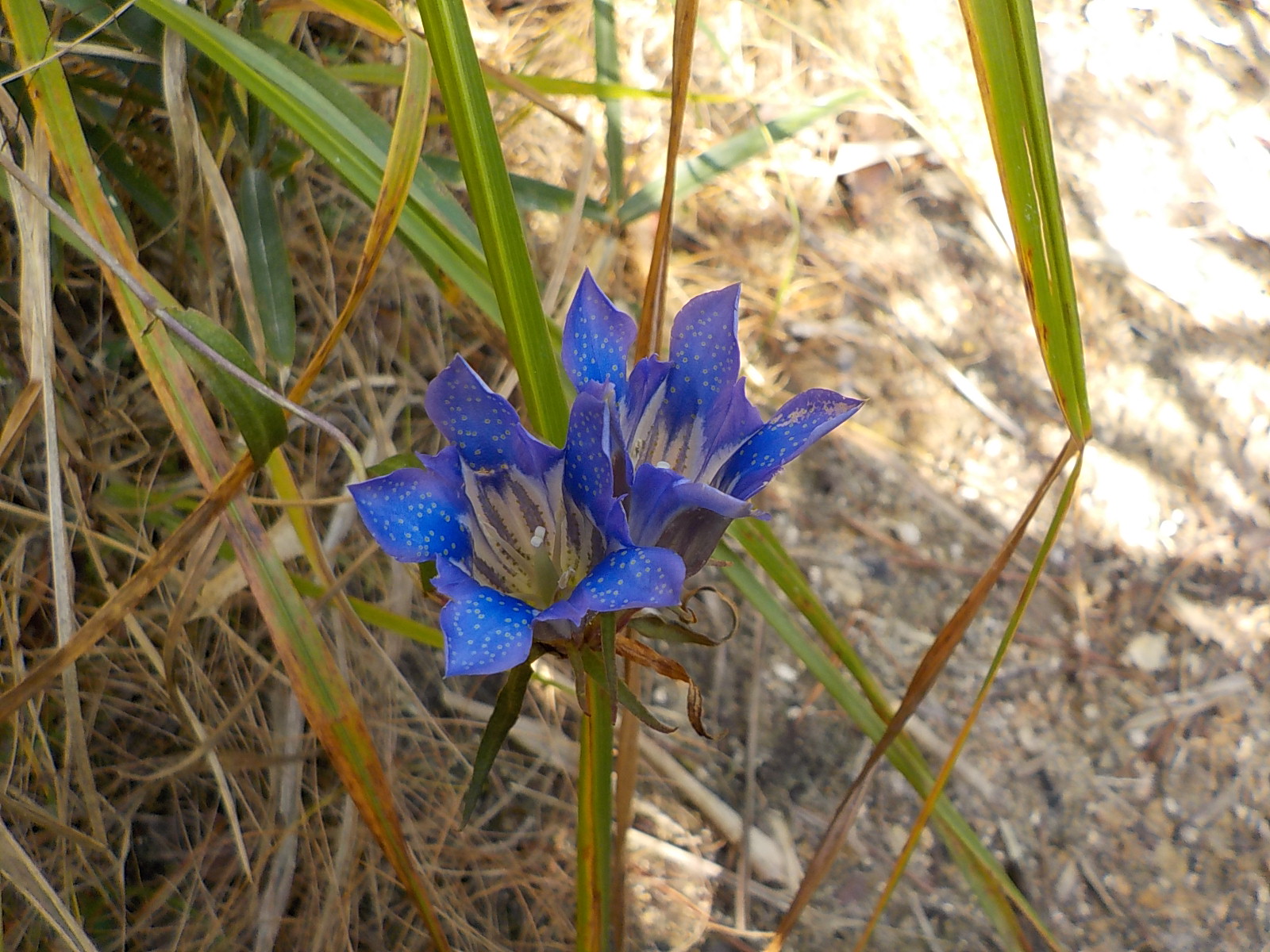 リンドウの花。カメラの発色が合わないのかなぜか青っぽく写ってるけど、本当はもっと紫がかった色です。