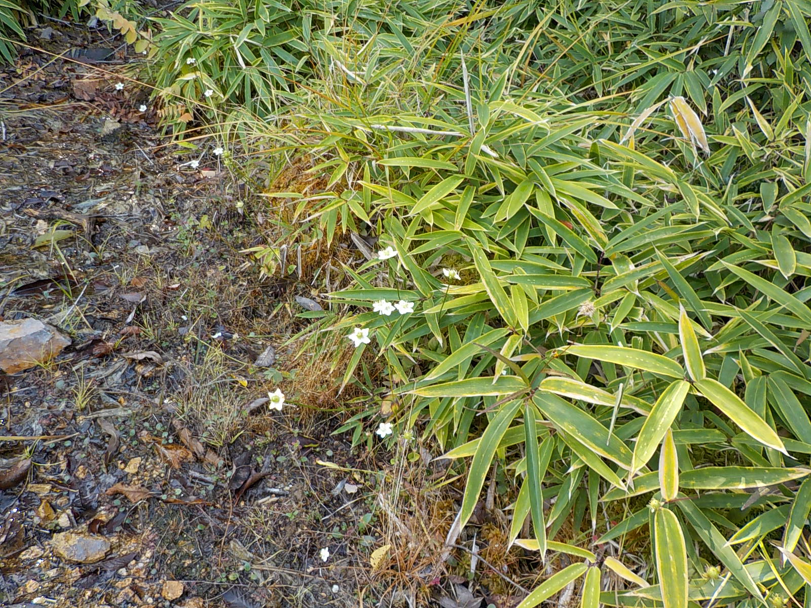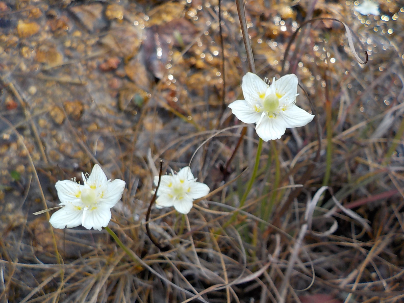 こんな感じで咲いてるウメバチソウ。湿地帯になっていてそこに流れ込む水の辺りにたくさんさいている。