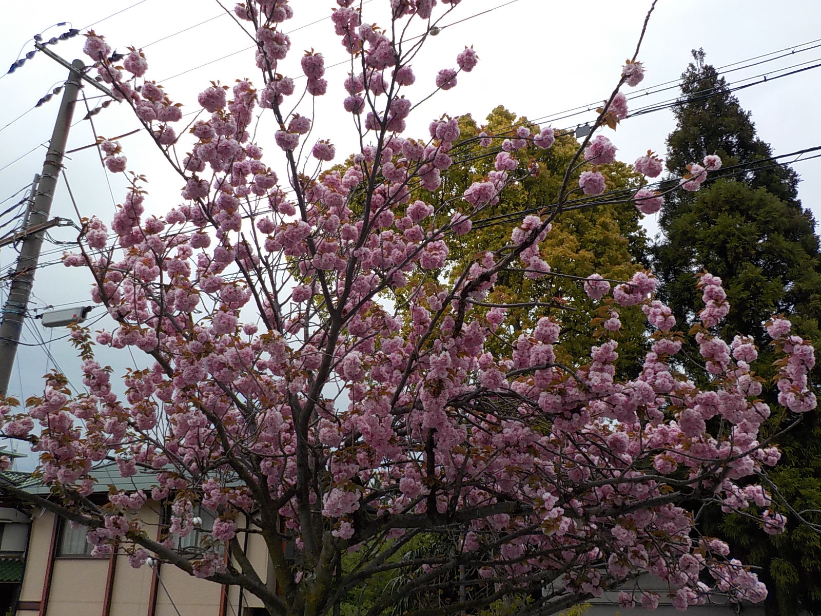 スミレ以外では、満開の八重桜もありました。