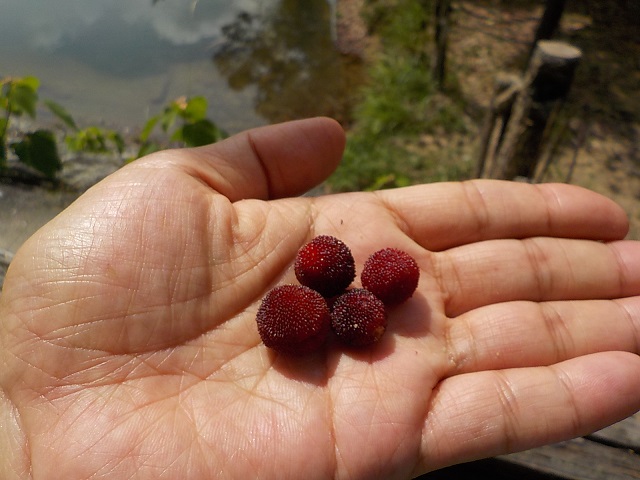 途中で昨日の雨に打たれて落ちたコケモモの実を見つけました。
