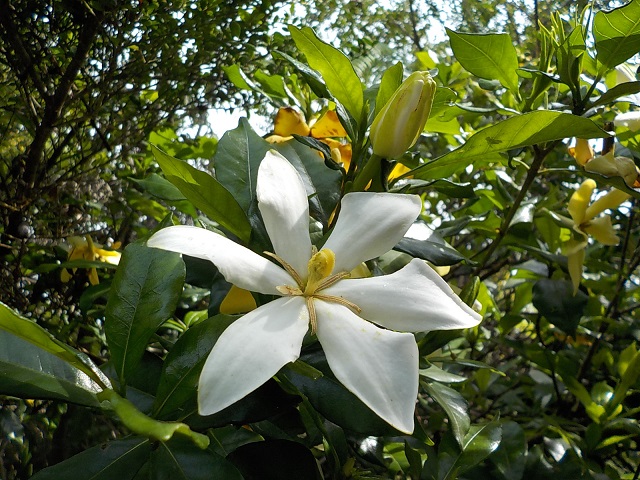 顔を上げたら立派な山梔子が咲いていました。何度も歩いてる場所なのに、こんなところに山梔子があるとは。まだまだ知らないことが多いんだなあ。