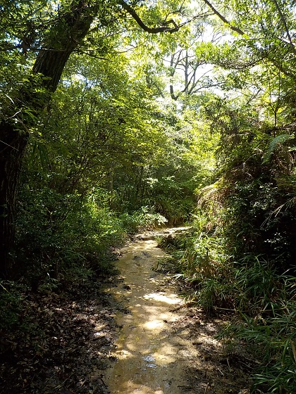 こんな具合に日がほとんどささない山道です。風が通っていくと涼しさが増しました。