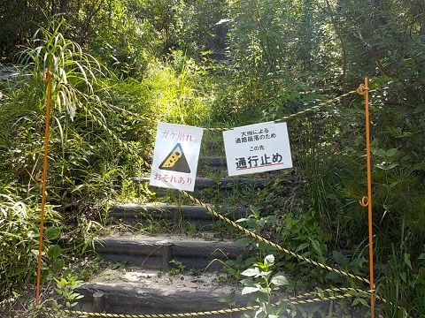 今月初めの大雨で崩れって通れなくなっていると書かれている。