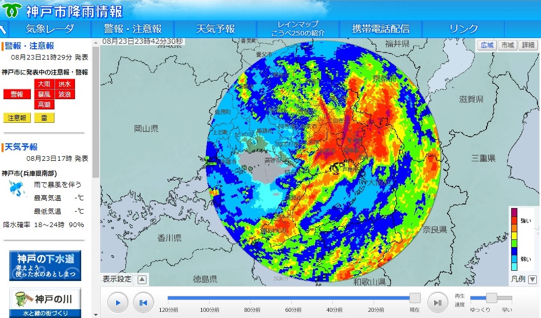 いつも周辺の空模様はこの雨雲レーダーを見るのですが、今回の台風がこんなにはっきり見えていることに驚いたり感心したり。^^