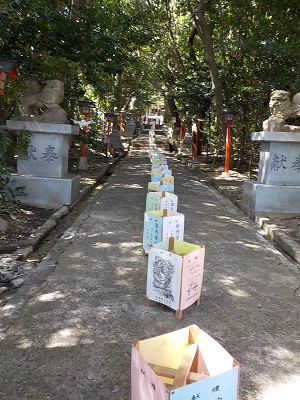今夜はなにかのお祭りがあるらしくて、灯籠が沢山並んでいました。