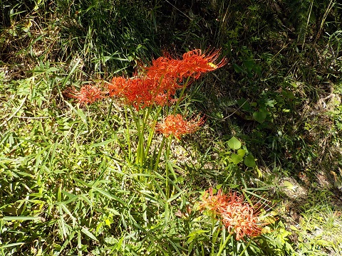 先日の崩落現場の横から入って5分ほどの小道の横で彼岸花が咲いていました。