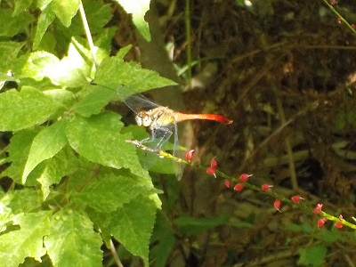 ミズヒキの穂先の赤とんぼです。