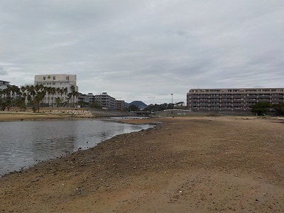 途中で幾つか幹線道路を渡るので信号待ちの休憩を入れて40分ほどで浜に出ました。