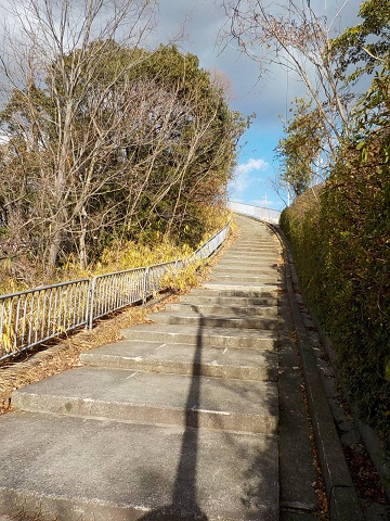 ここは全部で80段ほどあって段が歩幅に合わなくて使いづらいのです。数を数えながらゆっくり歩いていますが、段を上りきるとホッ息をついてしまいます。