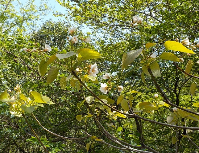 木の葉だけの時期より、花が咲いてるとやっぱり目に留まるなあ。^^