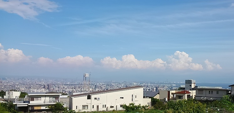 午後から少し散歩に出てうろうろしていると、青い空に入道雲っぽいのがたくさん浮かんでました。