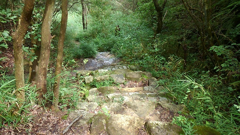 崩落箇所は一昨年、きれいに整備され、そこだけ歩きやすくなってますが、残りは雨に濡れた石で足が滑りそうでした。