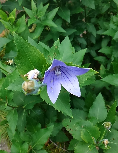 住宅街をトロトロと走ったり止まったりしていると、庭先に桔梗の花が咲いてるところがありました。