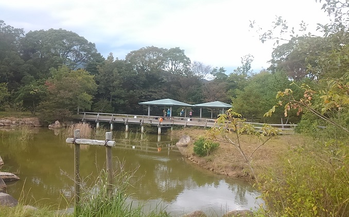北山の山道を通ってダムの方まで出て、その後ダム北側にある東屋へ。