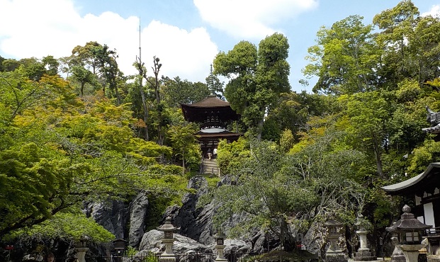 こちらは石山寺というとまず出てくるような画像です。手前にあるたくさんの石(岩)は天然記念物だそうです。その奥に見えているのは多宝塔です。