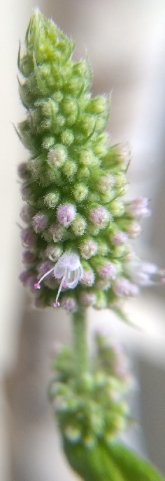 鉢植えの中では、スミレ以外に2鉢あるのですが、うち一つが何年も前に近所でもらったミントです。そのミントの先にち~いさな花が開きだしてました。