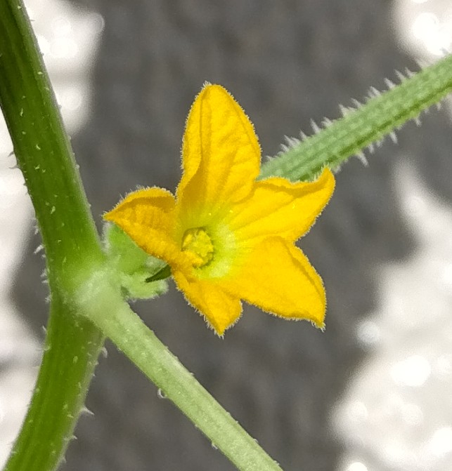 瓜科の花ですね〜。大きさは2センチもないほどで、この季候ですから結実するかはわかりませんが、夏の間は暑過ぎて花も咲かなかったベランダで久しぶりに花を見られて何よりなのです^^。