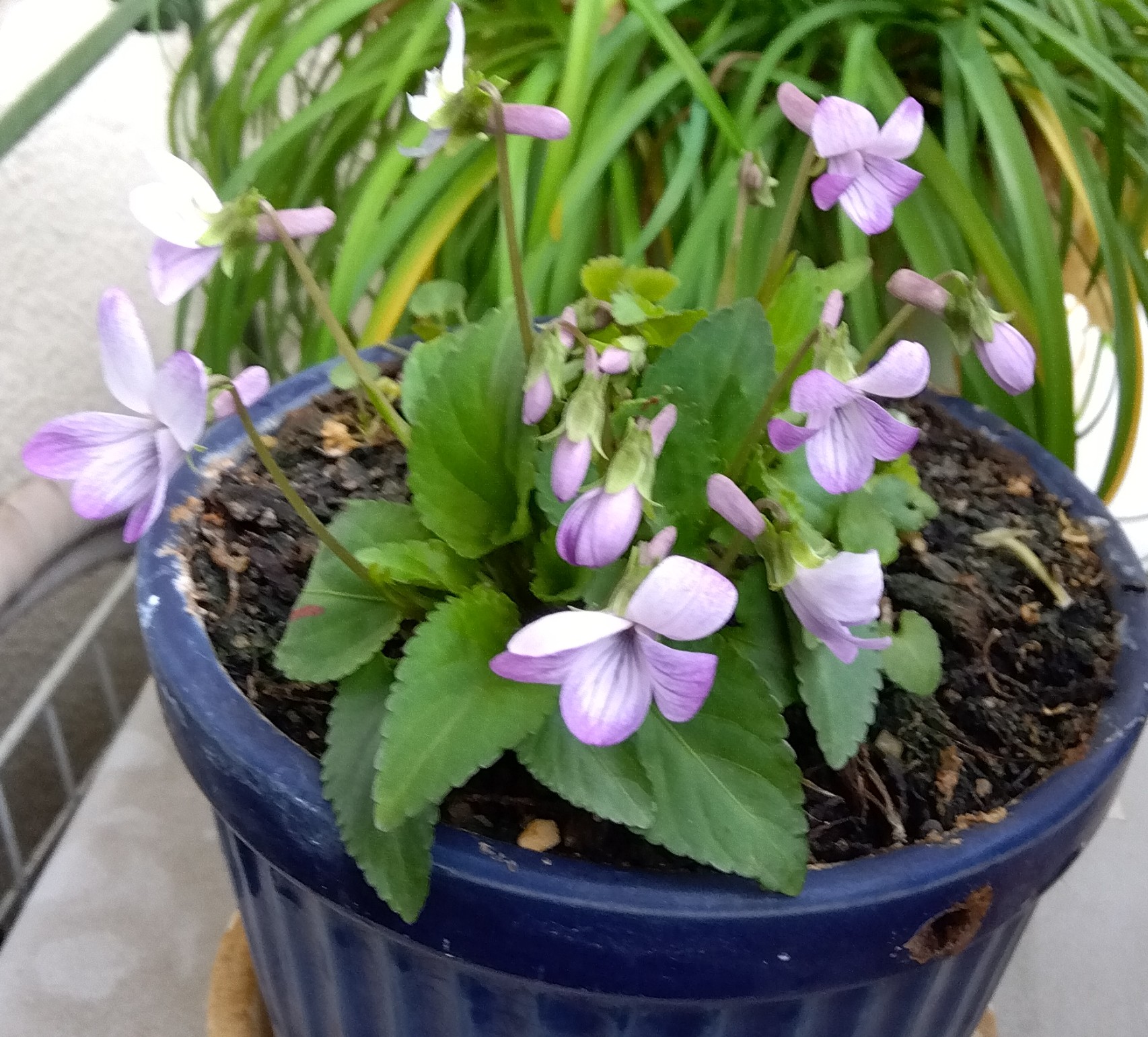 さて、このところ暖かかったからか鉢植えのスミレが一斉に花を開き始めました。
