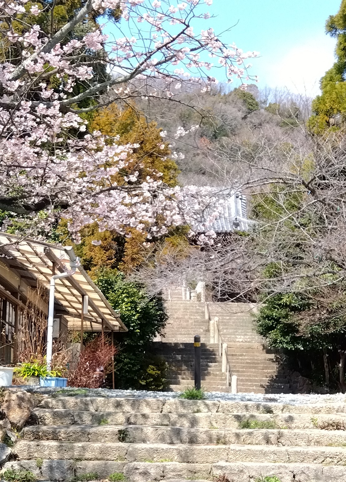 いつもの甲山の麓にある山門の前の茶店の桜だ。