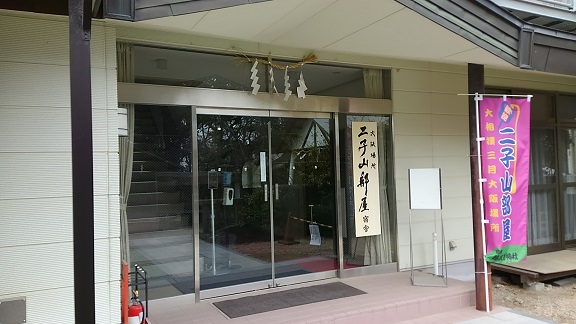 この神社では秋になると赤ん坊の泣き相撲が行われ、そのために土俵も常設されているんですよね。で宿舎になっているのは社務所の建物でした。