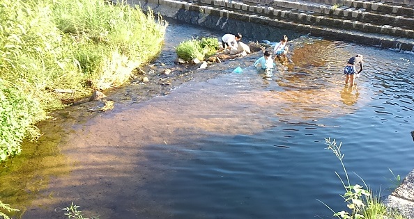その後火垂るの池の方へ出て、塞神社の前を通ったら珍しくお参りをしている人がいました。
